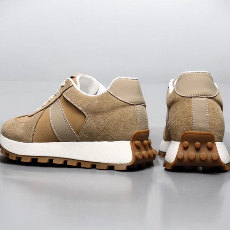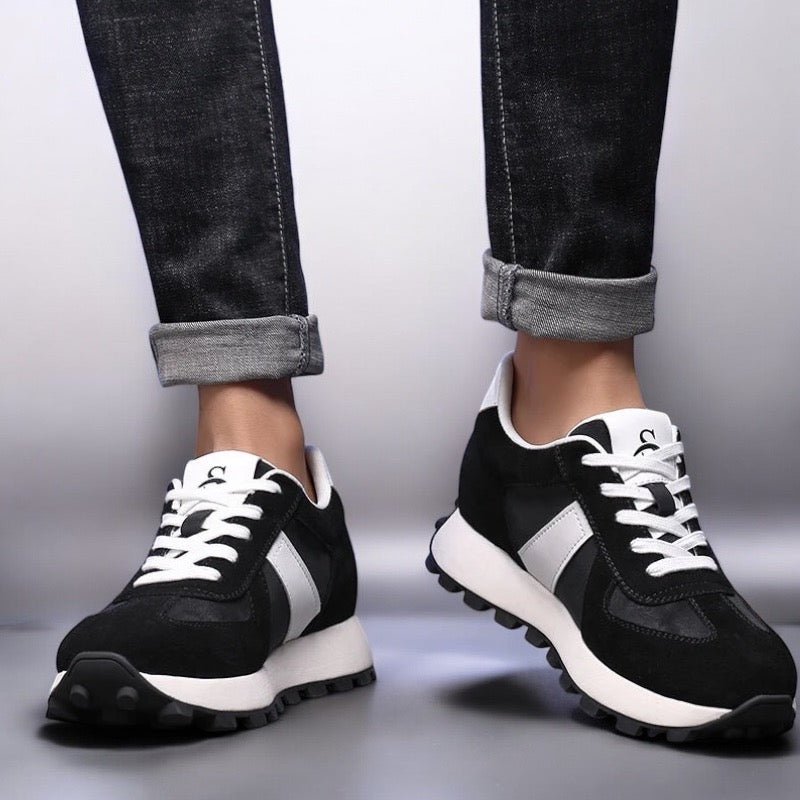 Design sportivo italiano & elevazione invisibile. Montello – Alto reinventa la sneaker sportiva con un tocco di eleganza italiana. Grazie al suo sistema di rialzo discreto da +6 cm o +8 cm, integrato direttamente nella suola, slancia la silhouette e dona una sicurezza immediata — in totale discrezione.